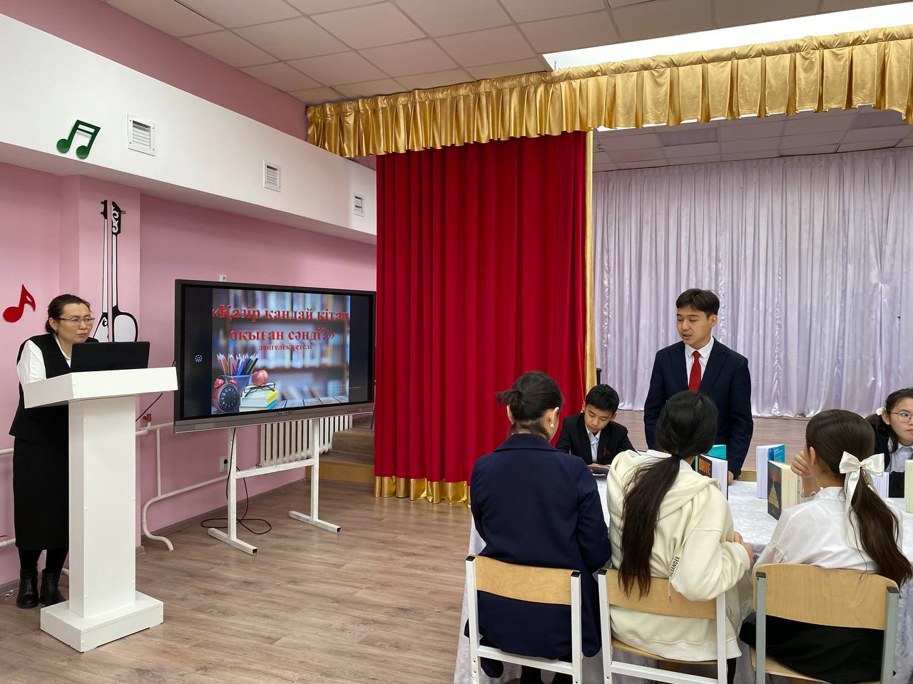 Қажығали Мұханбетқалиұлы атындағы орта мектеп-гимназиясында қараша күні «Оқуға құштар мектеп» жобасы бойынша 10-11 сыныптар арасында «Қазір қандай кітап оқыған сәнді?» тақырыбында дөңгелек үстел өткізілді. Кітаптың адам өміріндегі орны туралы ұғындыру мақсатында ұйымдастырылған шара барысында оқушылар негізгі өзекті мәселе туралы өз пікірлерін еркін жеткізе отырып, кітаптың жыл өткен сайын құнын жоймайтын бағалы дүние екенін дәлелдеді. Өте тартысты өткен пікірталас оқырмандар үшін жаңа ақпараттар легі болды.