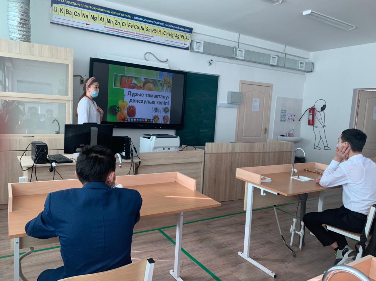 №4 Қарауылкелді орта мектеп-гимназиясының білім алушыларына «Дұрыс тамақтану — денсаулық кепілі» тақырыбында мектеп медбикесі тарапынан түсіндірме жұмыстары жүргізілді. Білім алушыларға дұрыс тамақтану технологиясы, ережелері, адам ағзасына қажетті дәрумендердің алатын орны мен маңызы жайында ақпарат берілді.